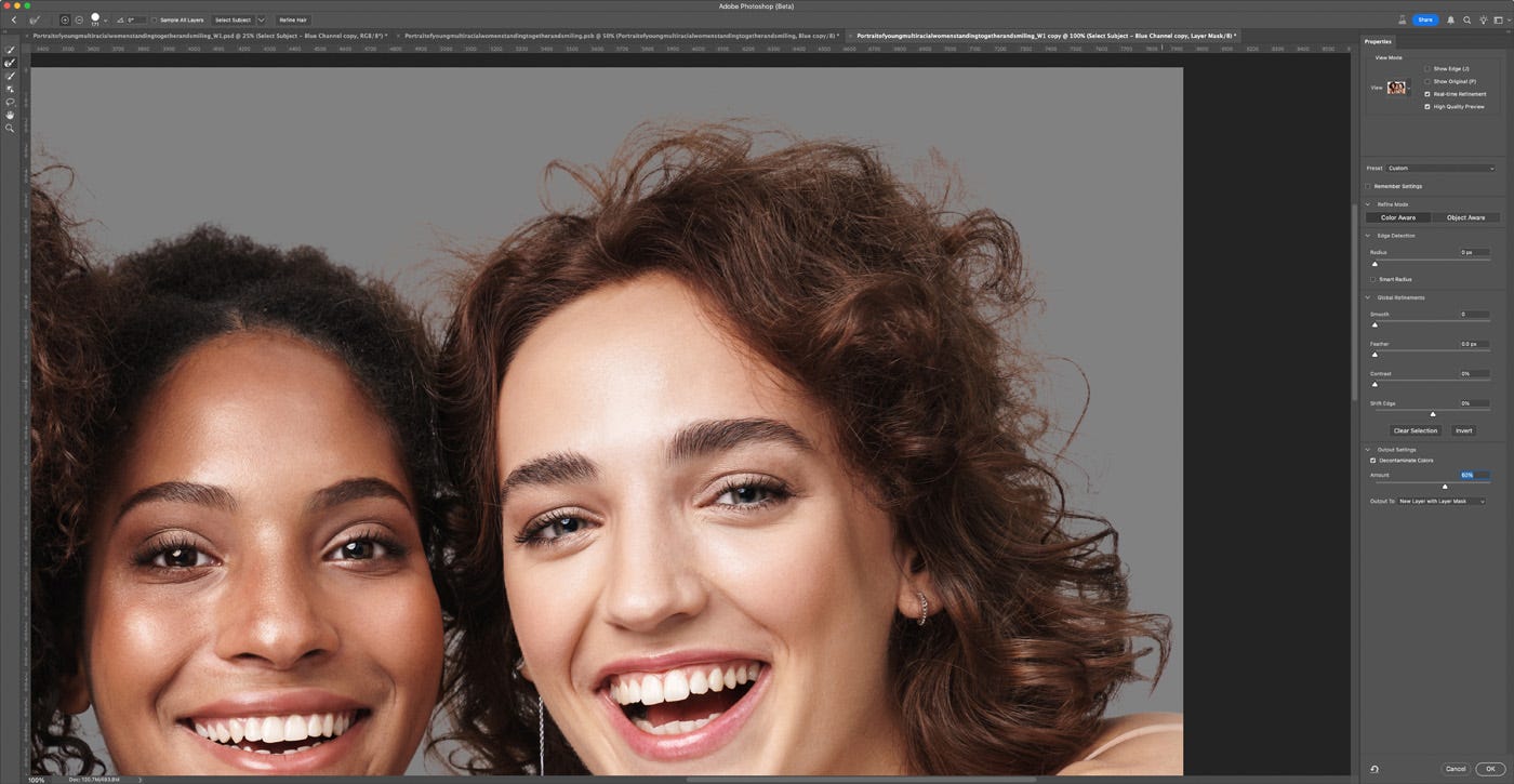 As you can see this is a big improvement over what simply using Select Subject gave us. For many uses this might be all we need to do. But if we need to finesse the result any more all we need to do is simply paint in some hairs around the edges of their heads. (See my Hair Painting tutorial here: https://dennisdunbar.substack.com/p/retouching-secrets-of-the-pros-natural )