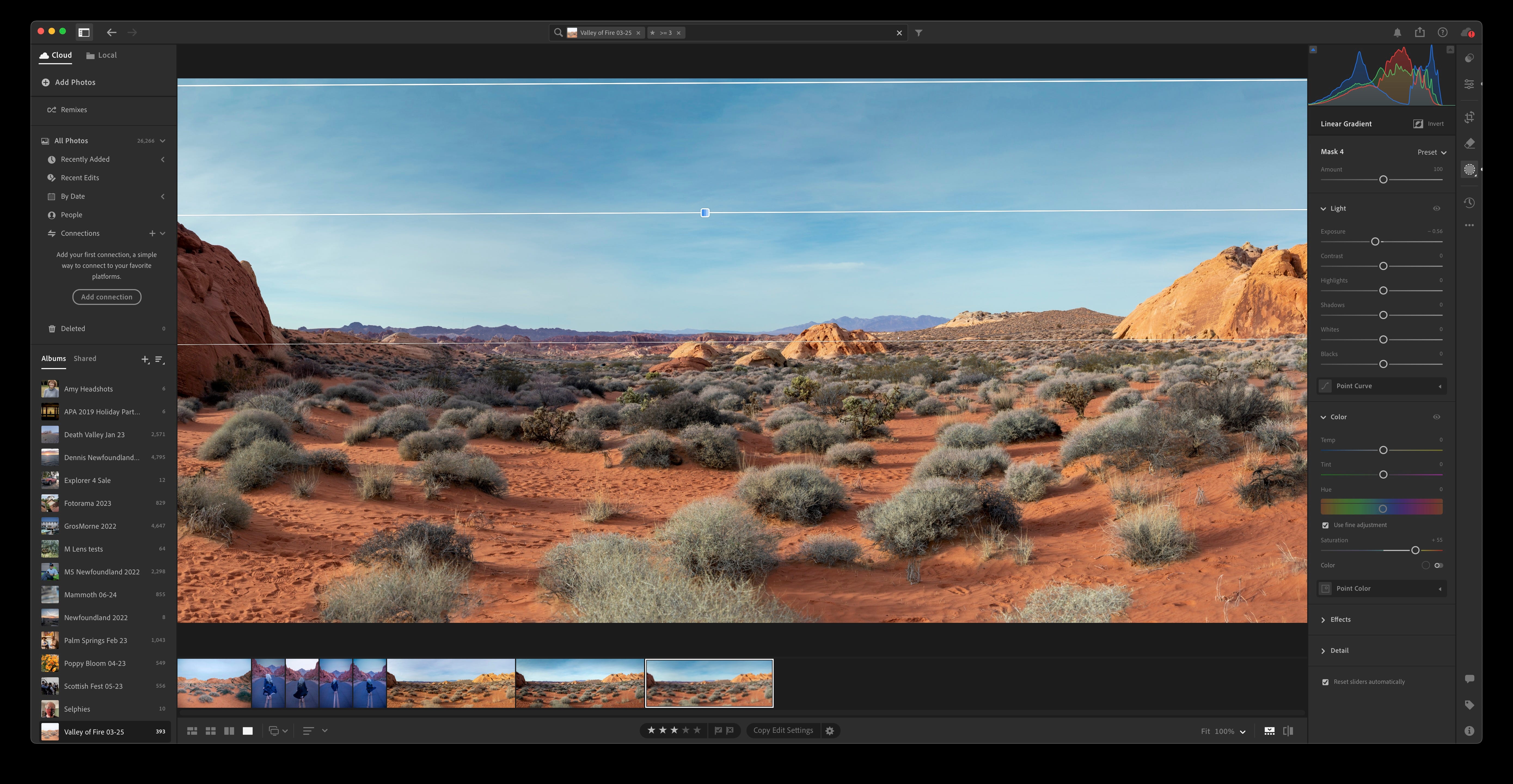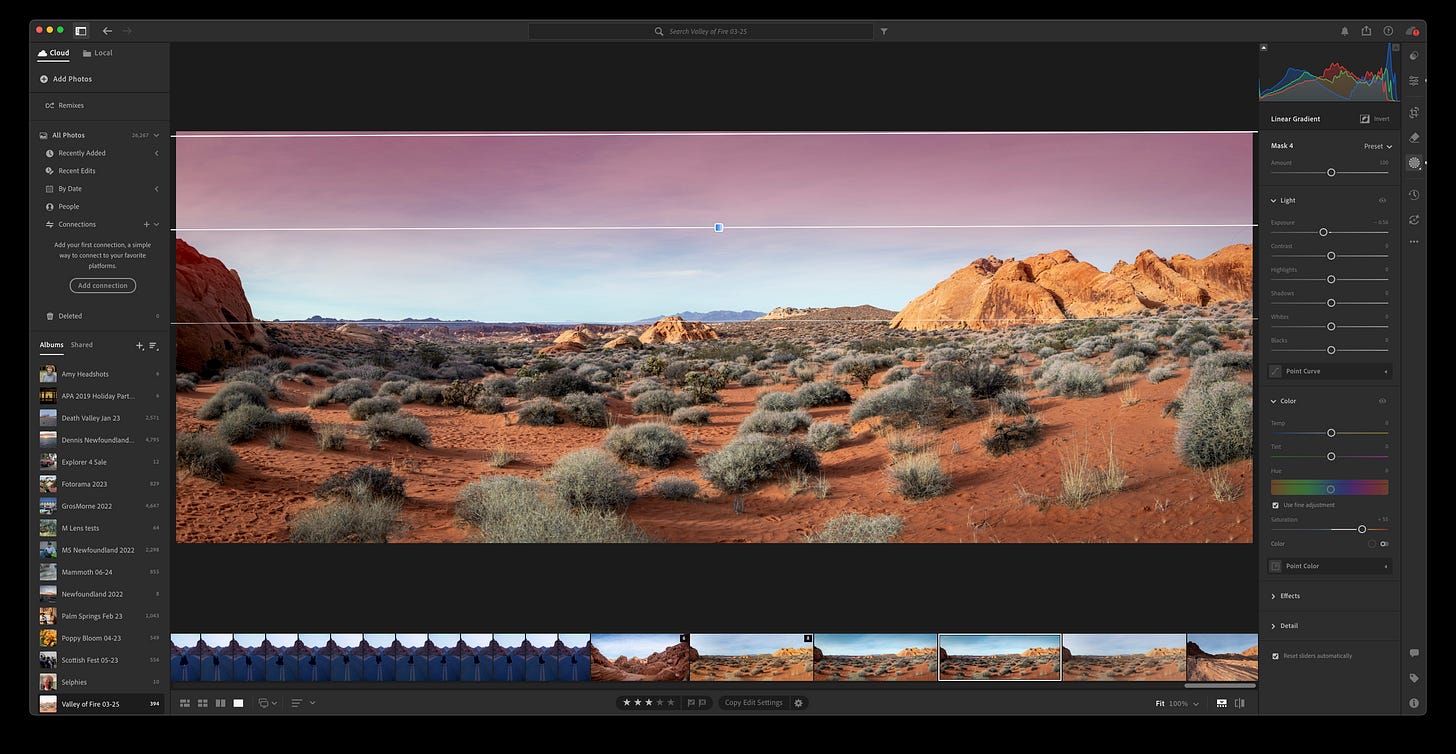 To give the sky a bit more depth and help hold the viewer’s eye in the frame, I used a Linear Gradient Mask from the top down and pulled down the exposure slightly.