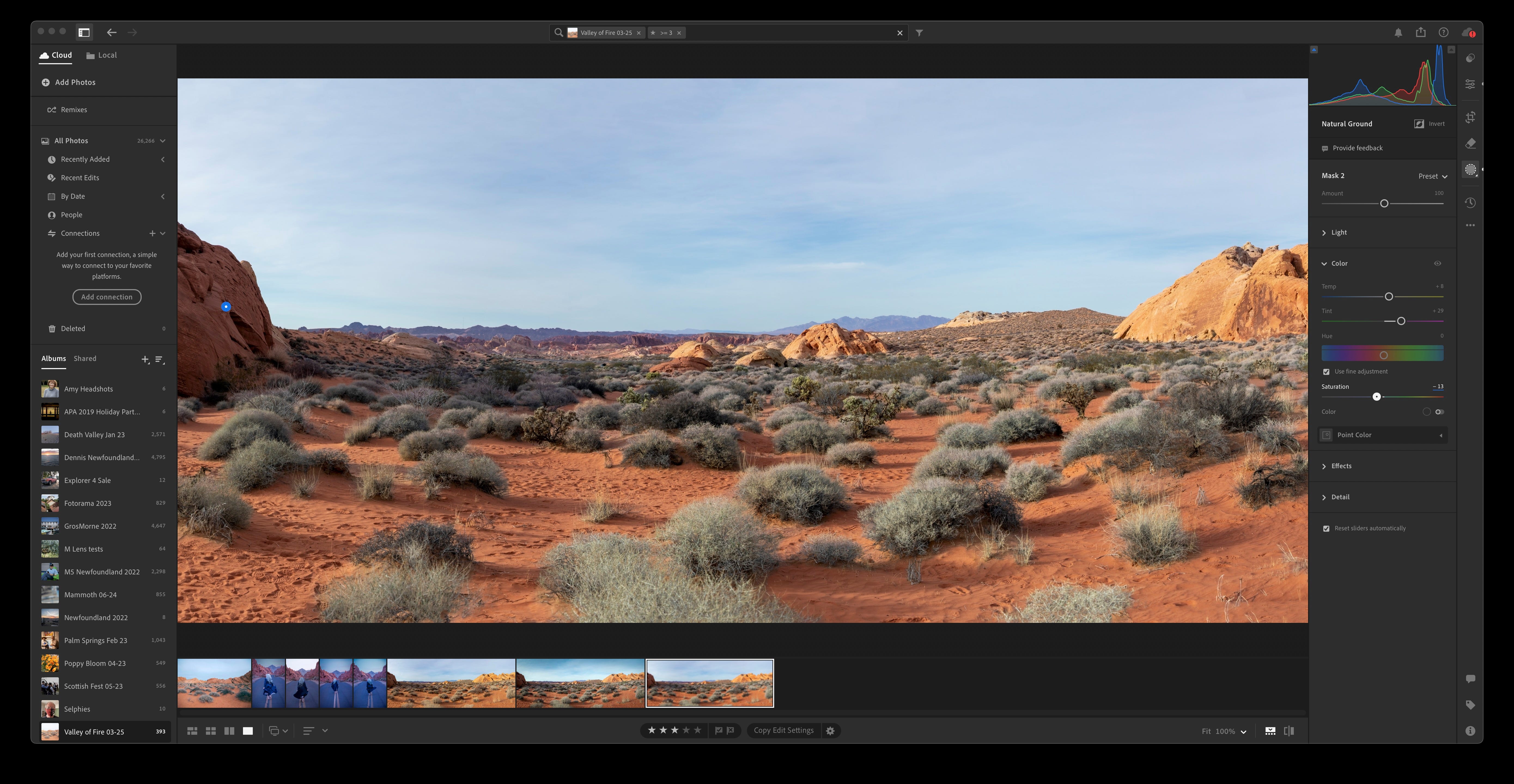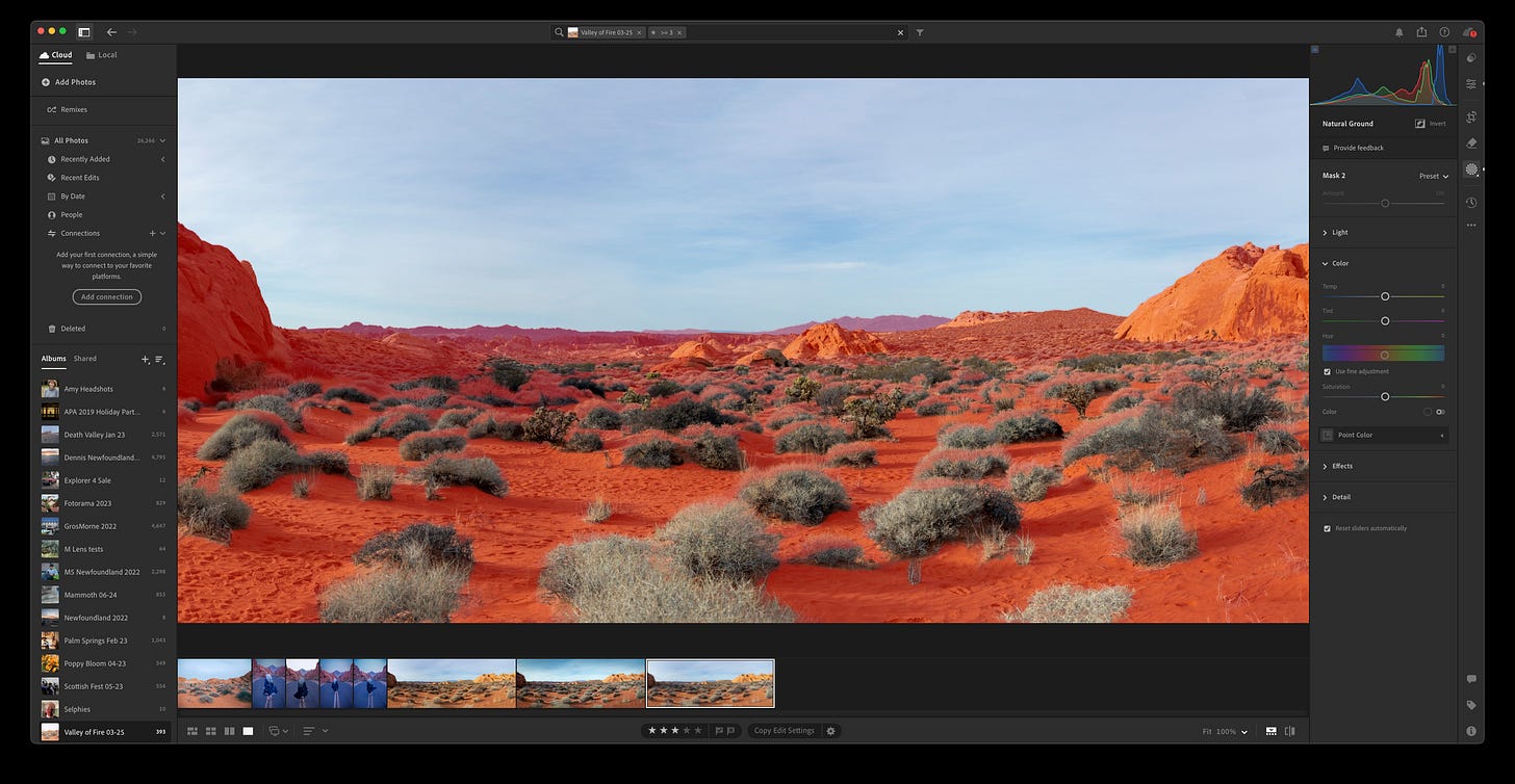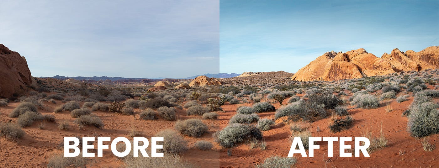 The camera saw dry desert. I saw deep reds, cool greens, and glowing sky. This tutorial shows how I used Lightroom’s AI tools to bring the scene back to life.