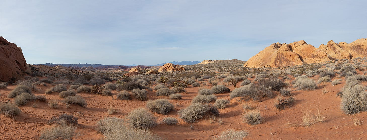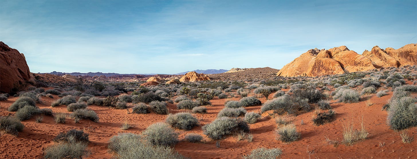 What struck me most when we arrived was the color. The ground was a deep, almost brick red. The bushes had this vibrant cyan/blue/green cast that danced in the sunlight. I wanted to capture a wide panorama that gave a sense of the scale—but more importantly, I wanted the color to reflect what we saw with our own eyes.