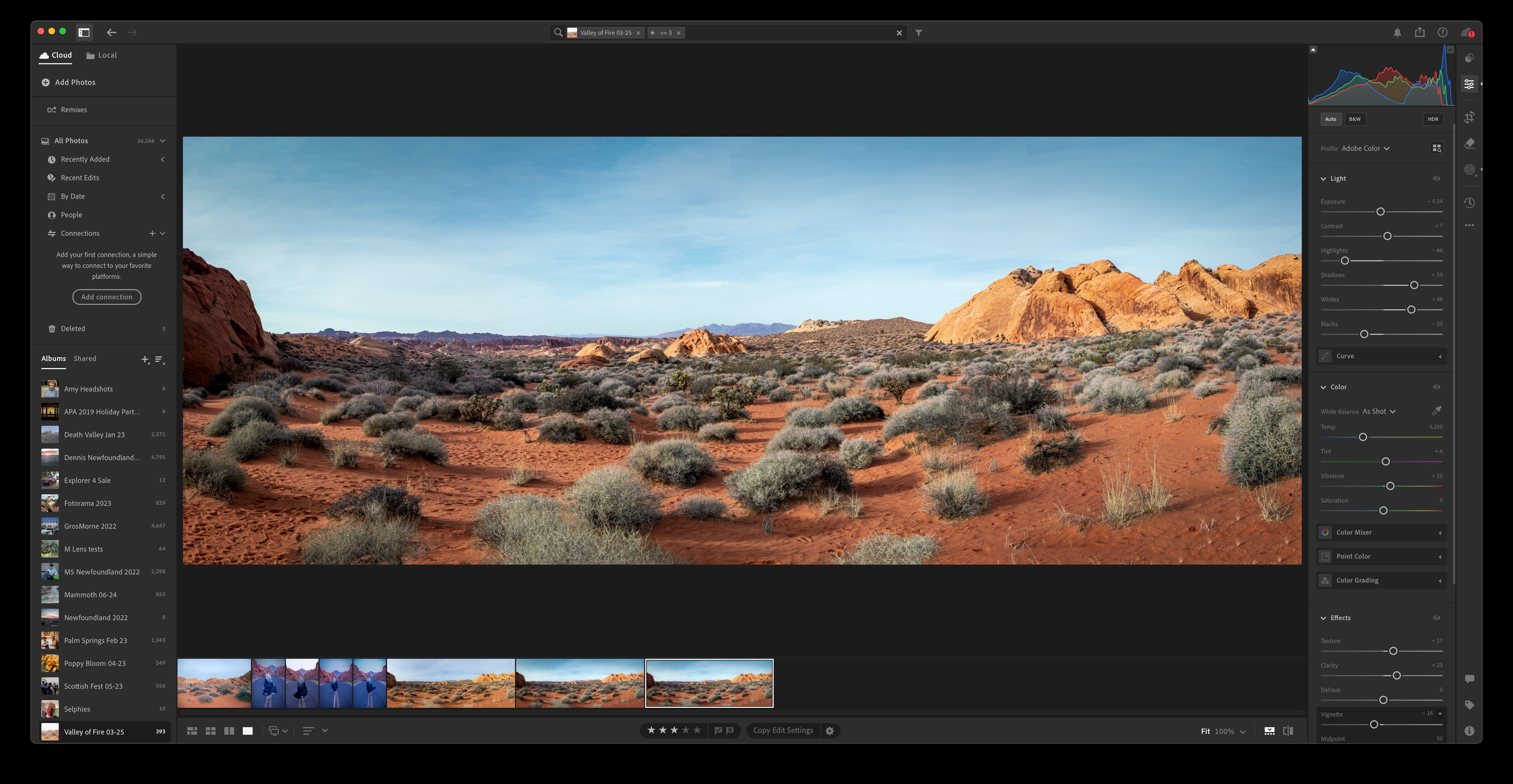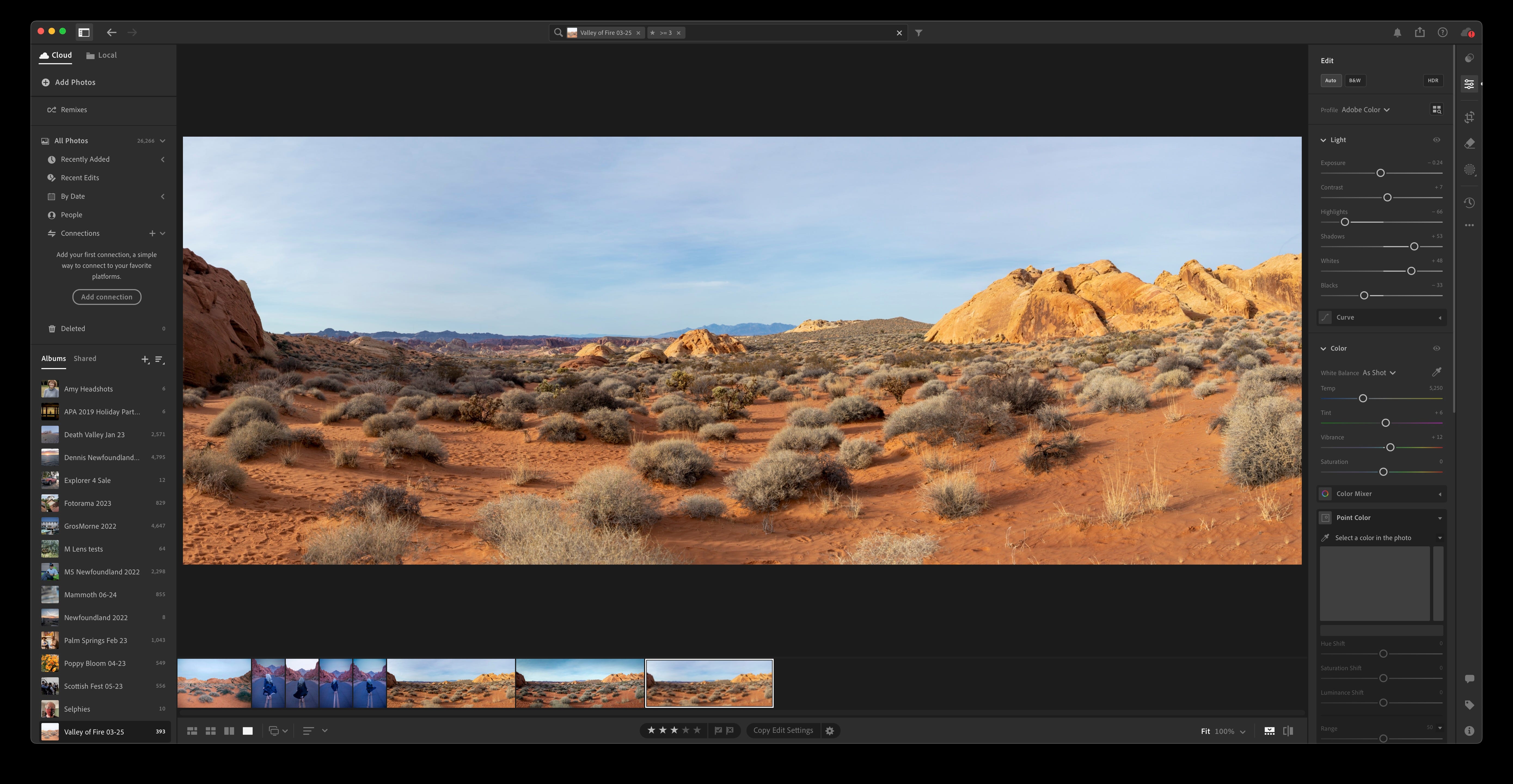 Lastly, I added some Clarity to emphasize texture in the rocks and vegetation, and a subtle vignette to draw attention toward the center of the frame. These finishing moves helped bring out the feeling I had standing there: crisp air, glowing ground, and a huge sense of space.